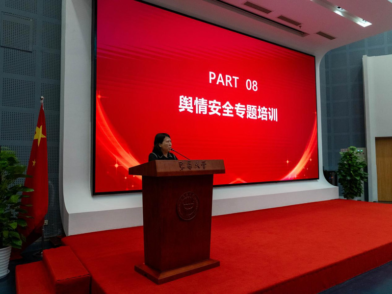党委宣传部副部长孙庆华为参会人员开展了宣传安全专题培训。通过多个典型案例,深入剖析了后勤领域当前在师生关切回应方面所面临的形势与挑战,并系统介绍了处理此类问题的有效策略。
