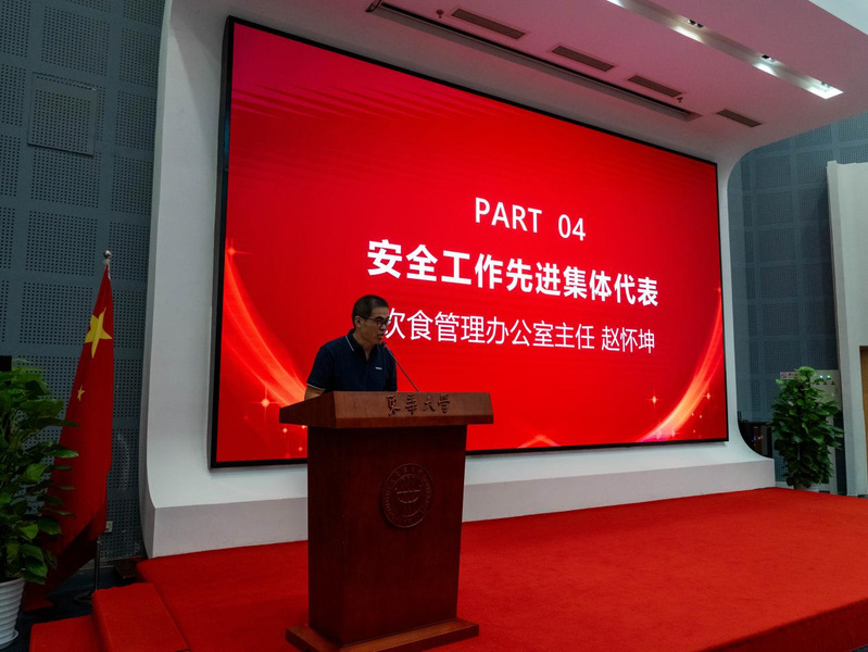 后勤服务中心主任唐俊峰对全体后勤员工为学校安全工作所付出的辛勤努力表示感谢,并向获奖集体和个人表示祝贺。同时,针对后勤安全工作提出了三点明确要求:一是全面落实责任,织密安全“防护网”;二是聚焦重点领域,找准安全“发力点”;三是精准施策,打好安全“持久战”。