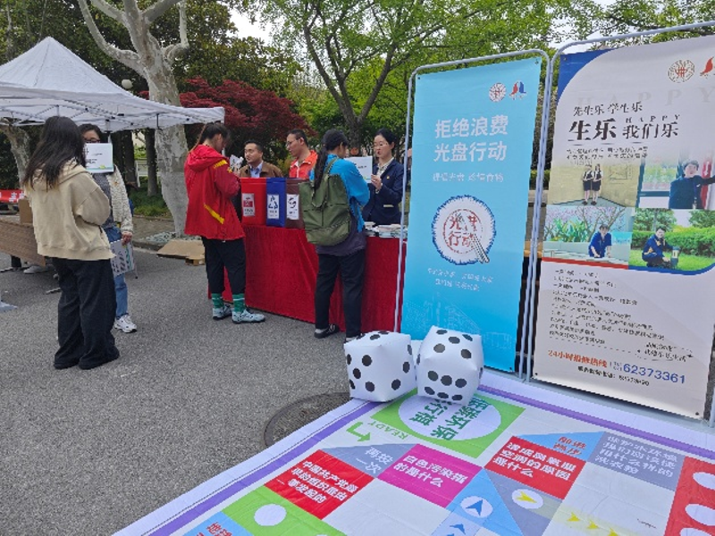 为深入践行绿色发展理念,进一步普及低碳校园、垃圾分类,弘扬勤俭节约的精神,东华大学后勤服务中心延安路校区饮食管理办公室联合上海生乐物业管理有限公司,2026年4月16日在延安路校区二食堂门口开展“节约始于心 环保践于行”的主题宣传活动。活动特邀上海生乐物业管理有限公司第二党支部相关人员共同参与,通过趣味互动与实践体验相结合的方式,让环保理念深入人心,营造了全员参与绿色校园建设的浓厚氛围。